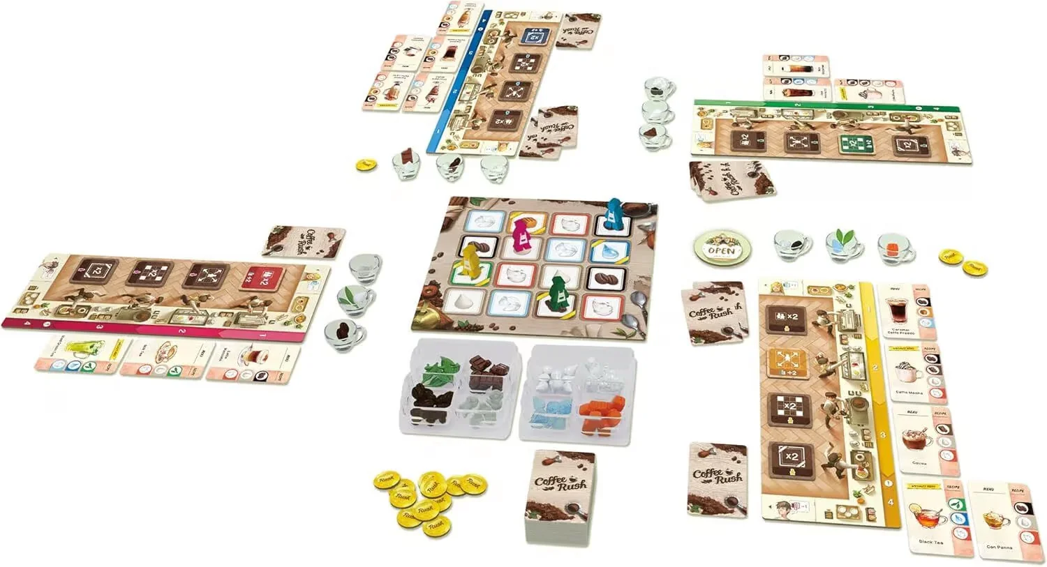 En este dinámico juego de mesa,serás un barista que debe preparar los pedidos rápidamente y con la mejor combinación de ingredientes. Cuanto mejor atiendas a tus clientes, más puntos ganarás… pero si te demoras, las órdenes se acumularán y el caos llenará la cafetería.