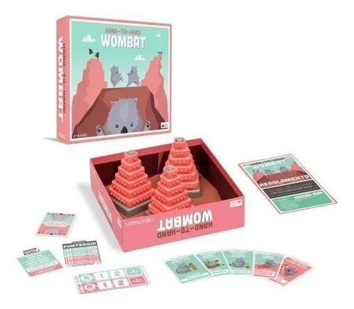 Hand-to-hand Wombat, un juego de trabajo en equipo, torres y alborotadores. ¿Podrá tú y tu equipo construir tres torres antes de que el otro equipo las destruya? ¿Podrá hacer todo eso con los ojos cerrados?